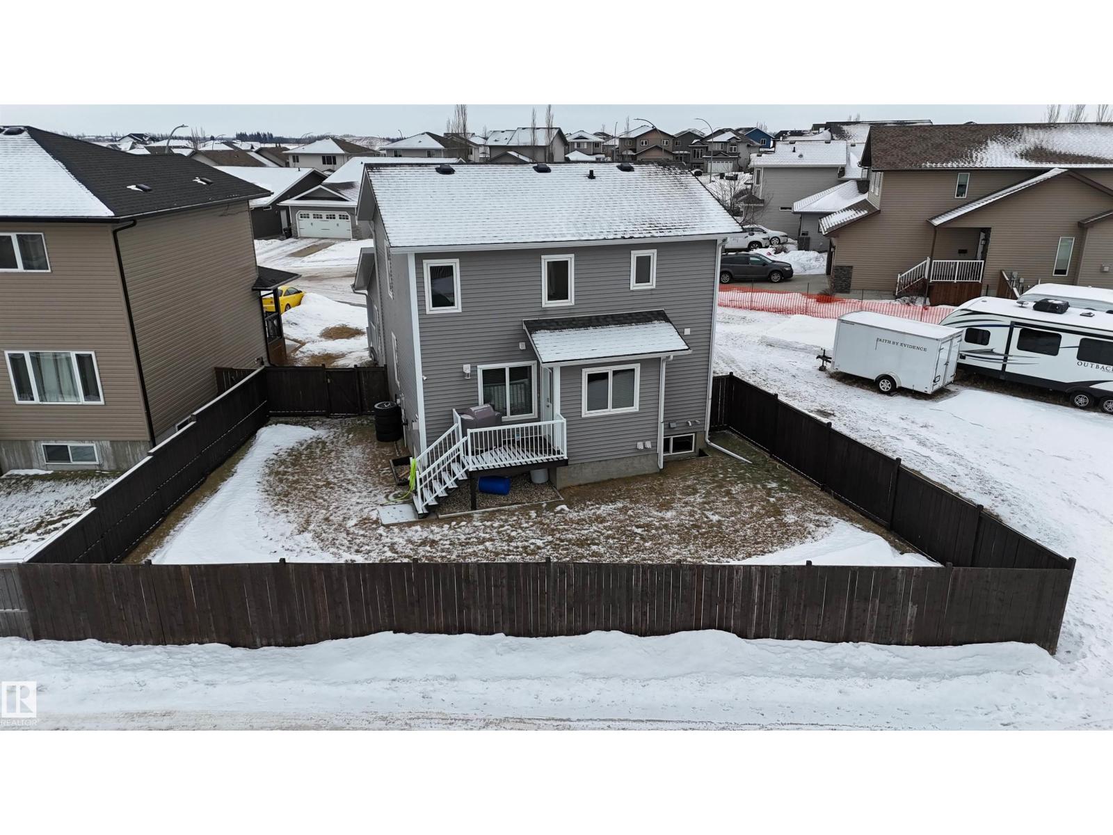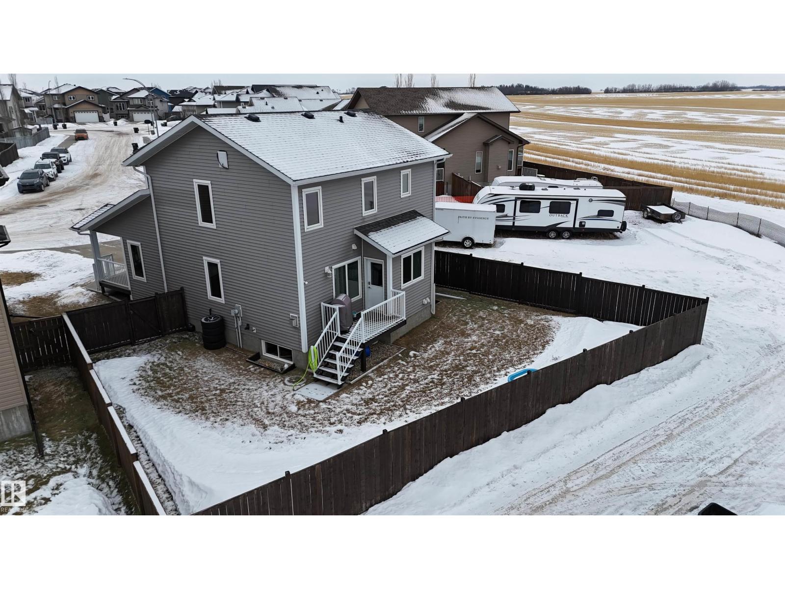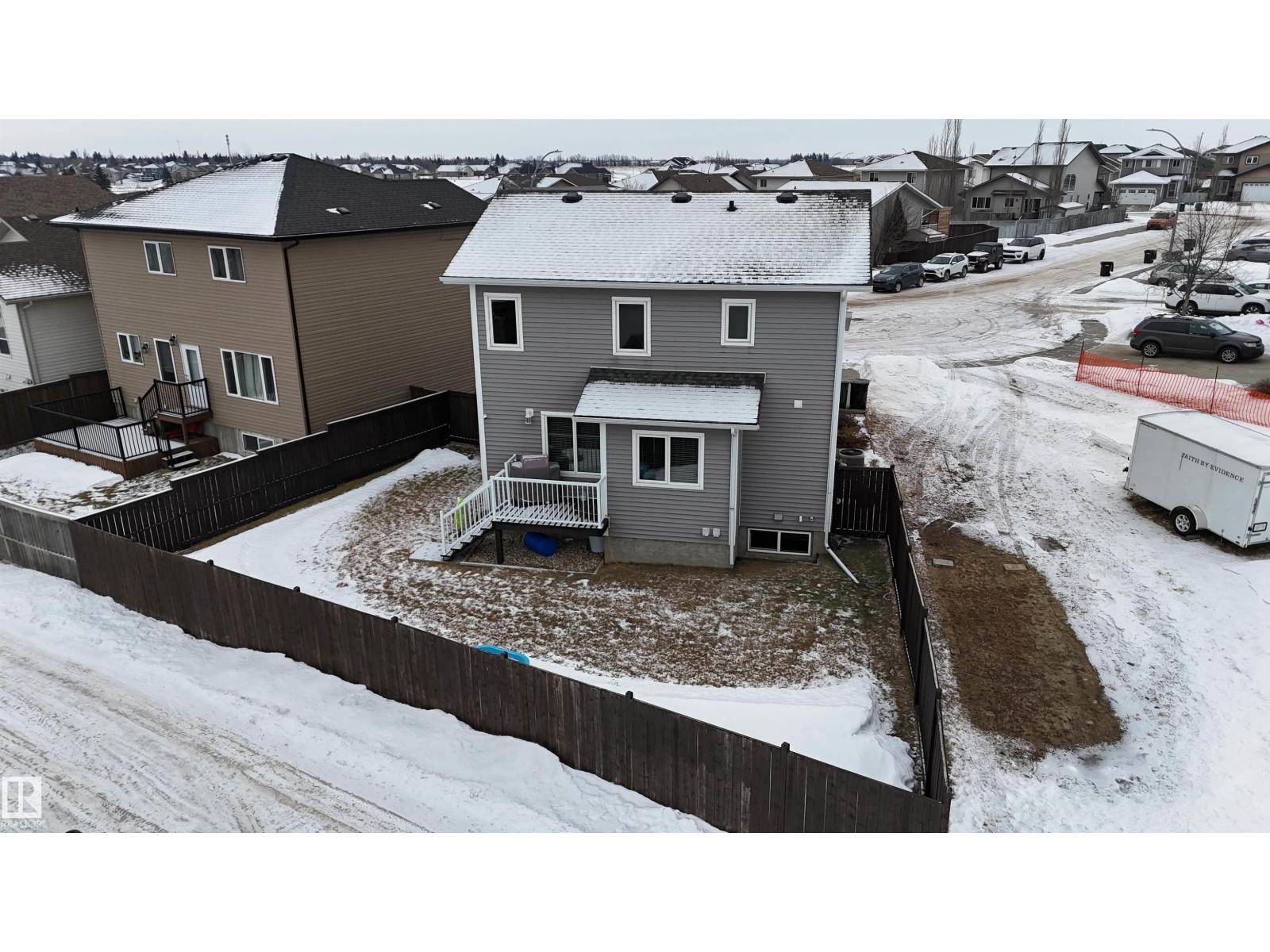Charming two-storey in the community of Southwest Meadows. This well-maintained property features an open-concept main floor with hardwood flooring, a cozy corner gas fireplace, and a functional updated kitchen ideal for everyday living and entertaining. Offering 3 bedrooms and 3 bathrooms, including a spacious primary suite with walk-in closet and ensuite featuring a double vanity. Convenient upper-level laundry adds everyday ease. The fully fenced and landscaped yard is perfect for outdoor enjoyment. The double attached garage offers in-floor heating, a floor drain, and an 8-ft overhead door. Additional features include air conditioning, granite countertops, gas BBQ hookup, upgraded insulation, on-demand (tankless) hot water, and in-floor heating in the basement. The basement includes two windows and a bathroom rough-in, providing excellent potential for future development. Recent upgrades include new kitchen appliances in 2025, including a gas stove. Located minutes from parks, schools and shopping. (id:42720)