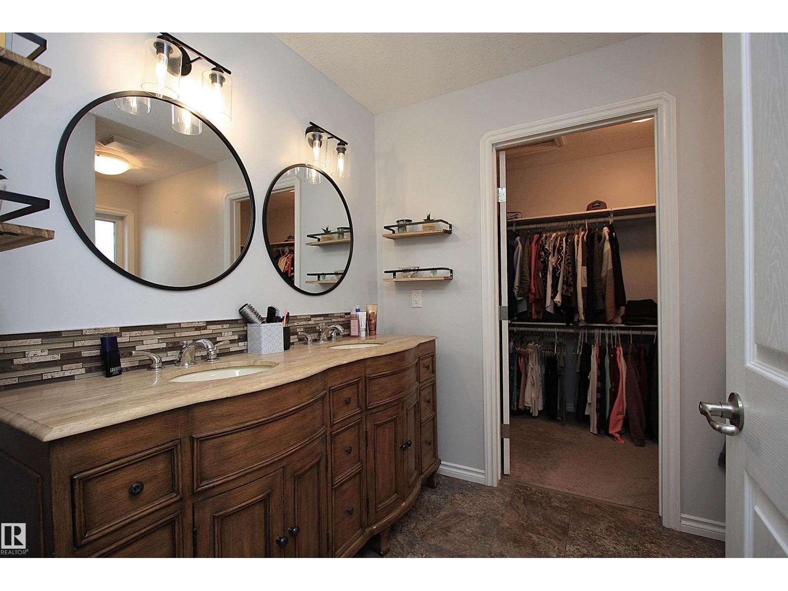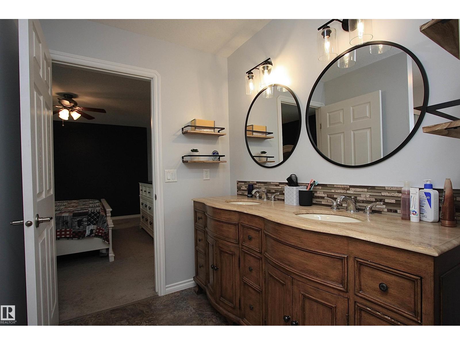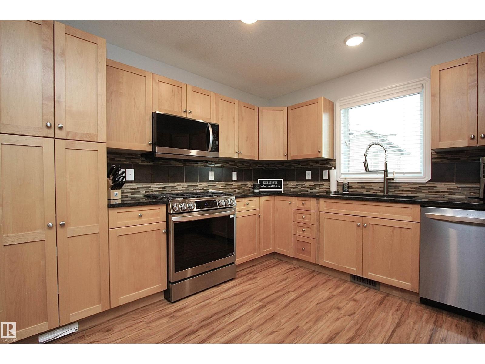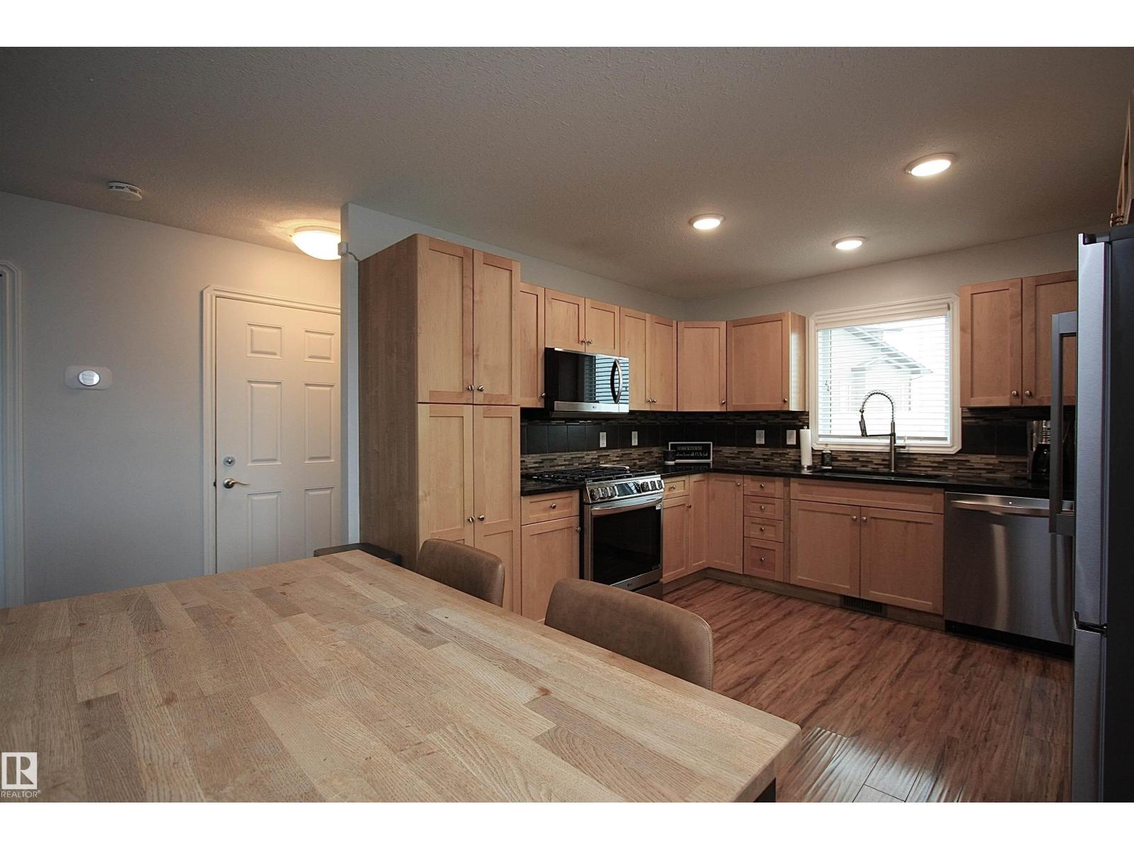 Charming two-storey in the community of Southwest Meadows. This well-maintained property features an open-concept main floor with hardwood flooring, a cozy corner gas fireplace, and a functional updated kitchen ideal for everyday living and entertaining. Offering 3 bedrooms and 3 bathrooms, including a spacious primary suite with walk-in closet and ensuite featuring a double vanity. Convenient upper-level laundry adds everyday ease. The fully fenced and landscaped yard is perfect for outdoor enjoyment. The double attached garage offers in-floor heating, a floor drain, and an 8-ft overhead door. Additional features include air conditioning, granite countertops, gas BBQ hookup, upgraded insulation, on-demand (tankless) hot water, and in-floor heating in the basement. The basement includes two windows and a bathroom rough-in, providing excellent potential for future development. Recent upgrades include new kitchen appliances in 2025, including a gas stove. Located minutes from parks, schools and shopping. (id:42720)