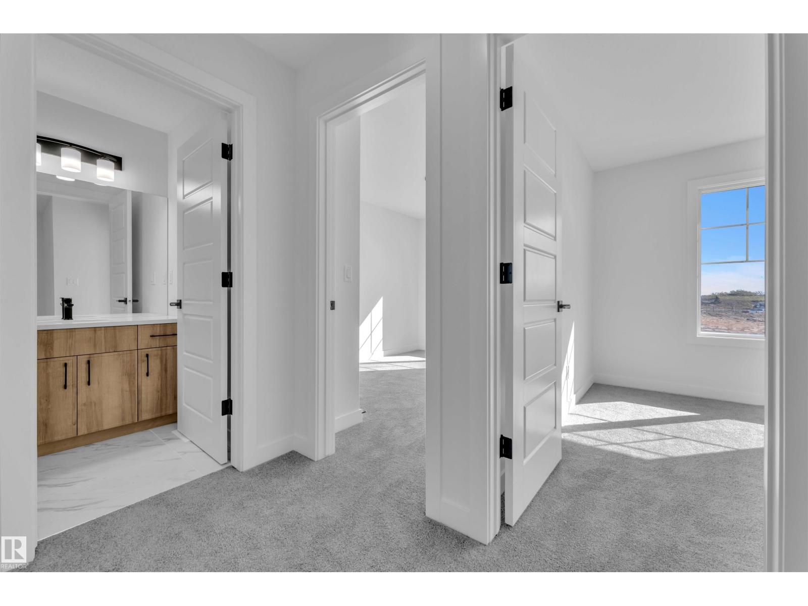 STUNNING EXECUTIVE 2 STOREY! Built by San Rufo Homes, the Brody model delivers 1,657 sq ft of upscale living with 3 bedrooms, 2.5 baths & a central bonus room. Designed with a 9-ft foundation & SIDE ENTRANCE for future possibilities, this home is loaded with high-end finishes. The open main floor showcases quartz counters, designer lighting, premium flooring & elegant 2-tone cabinetry. A chef’s kitchen with stylish backsplash, island & pantry flows seamlessly to a sun-filled living room anchored by a sleek linear fireplace. Upstairs, retreat to the spa-inspired primary with walk-in closet & 5-pc ensuite featuring dual sinks & luxury finishes. Two more bedrooms, family bath & laundry complete the level. With its SEPARATE ENTRANCE basement, this home offers exceptional potential. Surrounded by scenic trails & park space—where refined style meets modern living! (id:42720)
