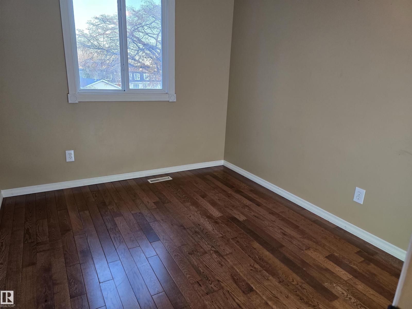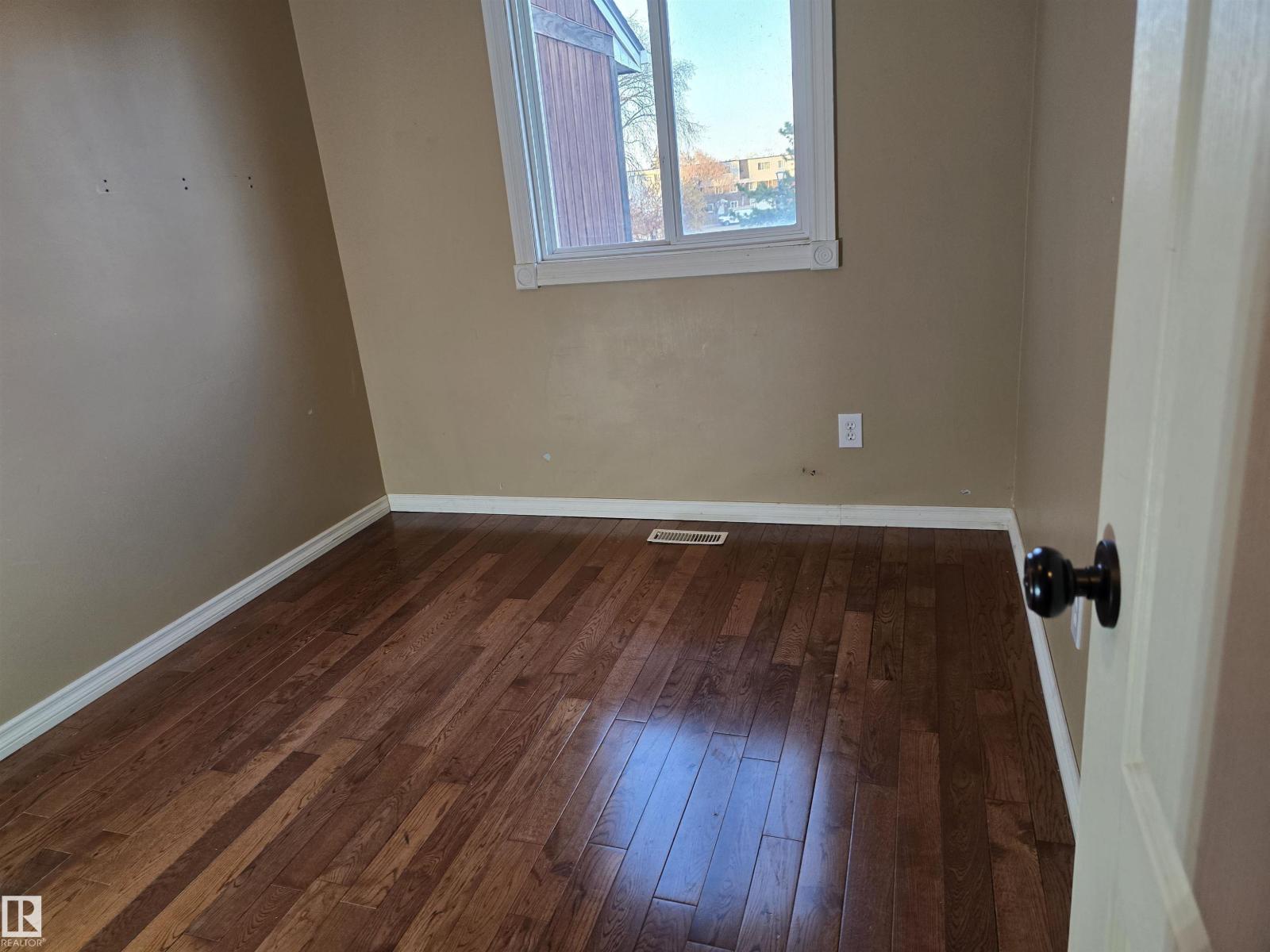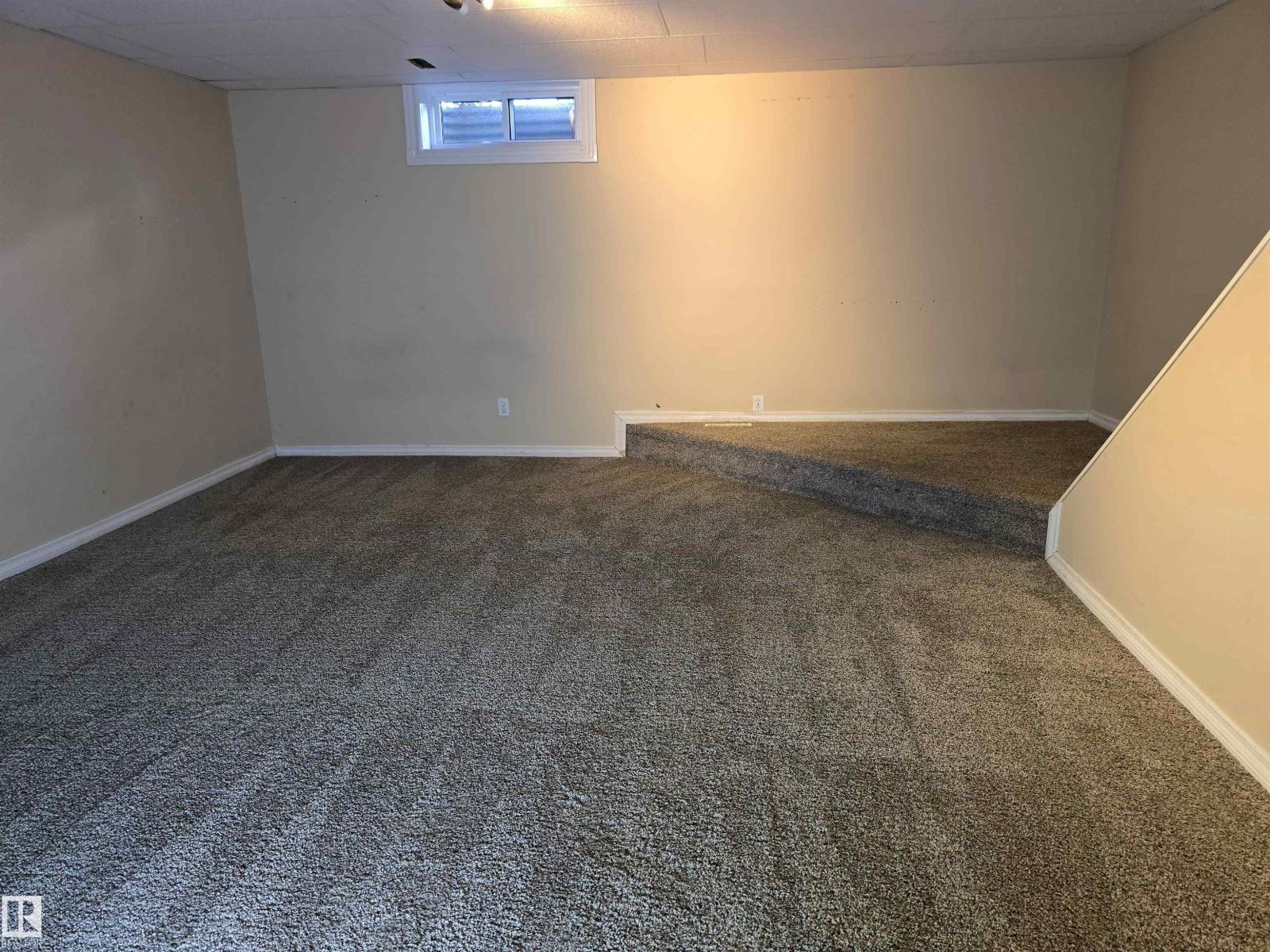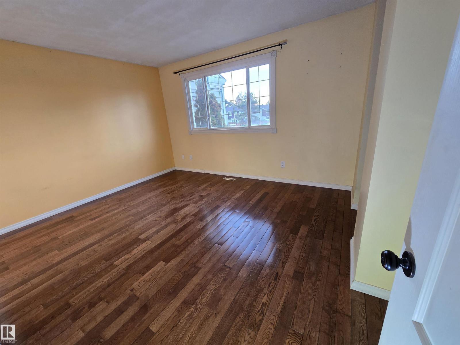 This 3+1 bedroom, 1.5 bath, 1,045 sq ft two-storey townhouse offers a warm and inviting layout with a finished basement that includes an additional bedroom. The main floor features hardwood flooring throughout the living and dining areas, while the kitchen and bathrooms both have tile flooring. Enjoy an updated maple kitchen with plenty of cabinet space, newer carpet in the basement, and a spacious primary bedroom with a walk-in closet. The fenced backyard provides a private outdoor space for relaxing or entertaining. Additional updates include vinyl windows, a newer high-efficiency furnace. Comes with two energized parking stalls. Conveniently located in the desirable Thorncliffe neighborhood—just blocks from West Edmonton Mall, schools, and transit. (id:42720)