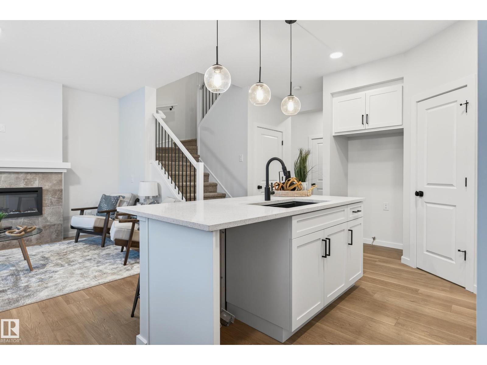 Introducing the “WHITEMORE” by Master Home Builder, HOMES BY AVI. Love the 1690 sqft of upscale design, situated on a pie shaped lot in the heart of Rosenthal. Highly sought after floor plan features 3 bedrooms, 2.5 bath, upper-level loft style family room & full size upper-level laundry room. SEPARATE SIDE ENTRANCE for future basement development (possible future legal basement suite). Home showcases 9’ ceiling height on main floor & basement, electric fireplace w/mantle, iron railing spindles, matte black hardware package, luxury vinyl plank flooring & walk-thru pantry/mudroom (with cabinetry & shelving) to double garage. Kitchen boasts pot & pan drawers, centre island, quartz countertops throughout & robust builder appliance allowance. Welcoming foyer with convenient front powder room. Private ensuite is complimented by large WIC & luxurious 5 pc ensuite with Jack & Jill sinks, soaker tub & shower. 2 add’l jr rooms & 4 pc bath. EXTRAORINARY HOME built by EXTRAORDINARY BUILDER! MUST SEE HOME!! (id:42720)