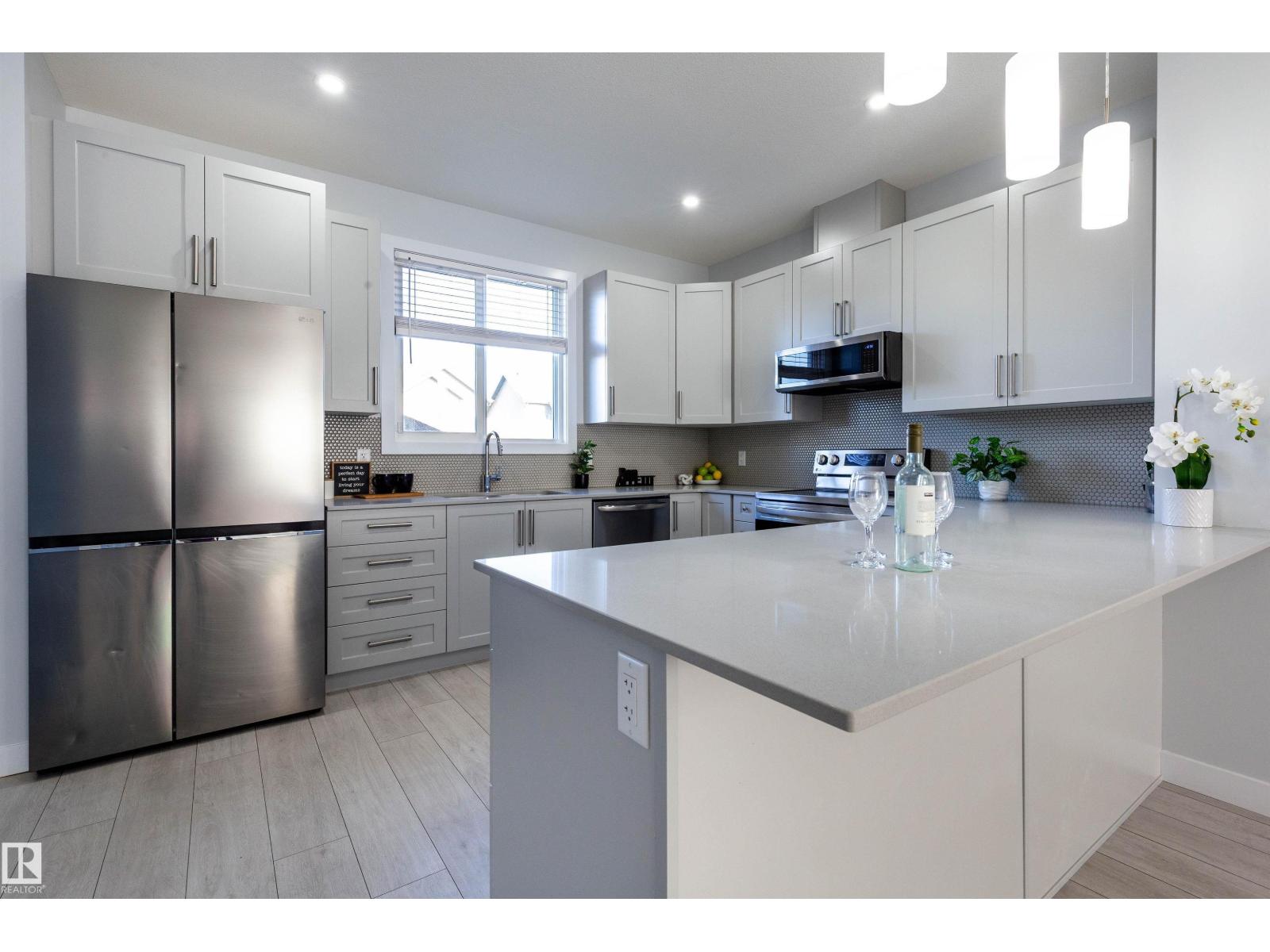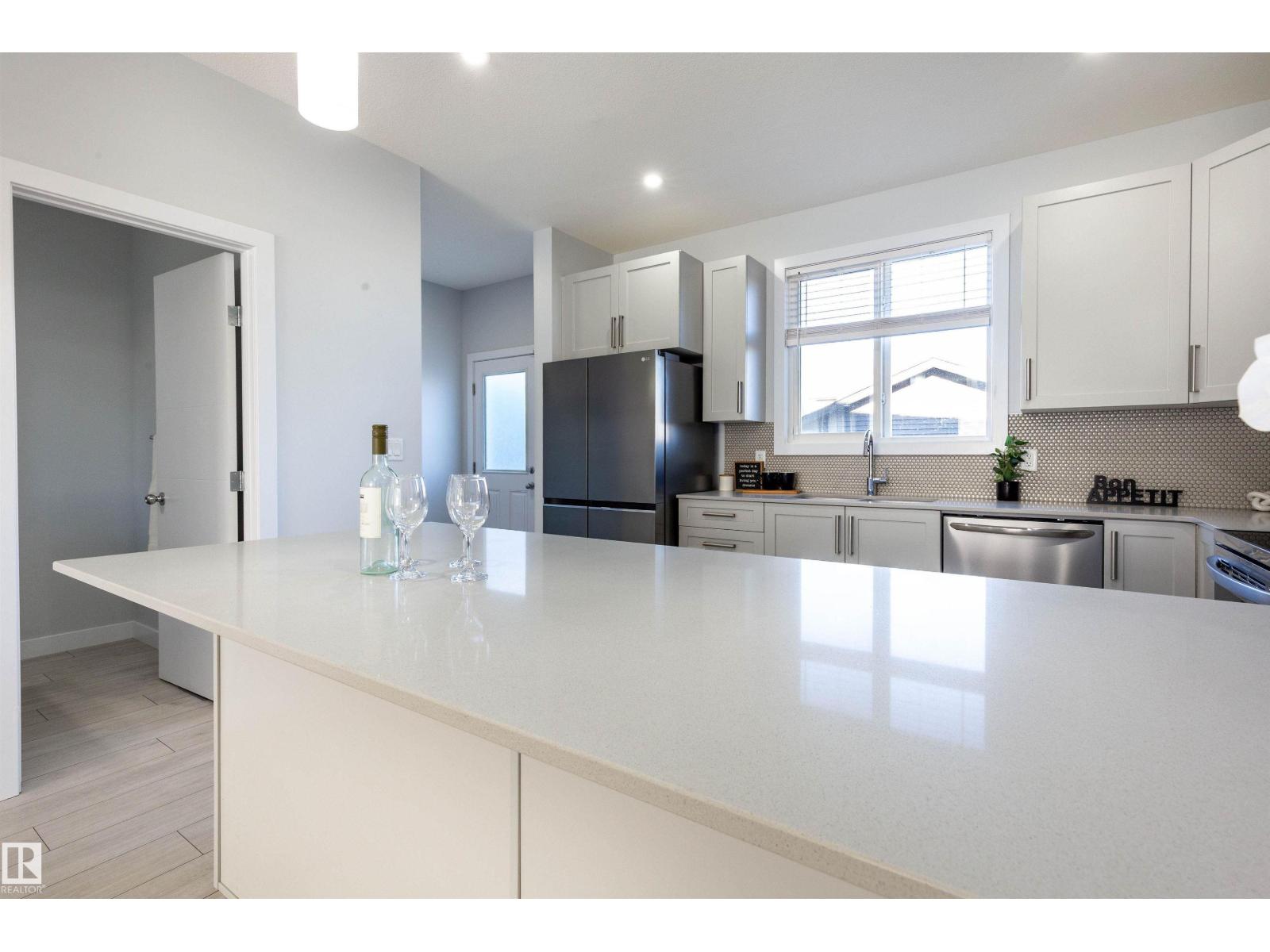 Best of both worlds! This is a very new home but no need to go through landscaping, fence or garage construction. It's ALL done! Hawks Ridge is a beautiful community with quick access to Yellowhead Tr or Ray Gibbons. This home was built by Lincolnberg homes. Neutral colors throughout the main floor with easy to clean luxury vinyl plank, Quartz countertops in the kitchen, stylish stainless steel appliances. Open concept between living room, dining room, and kitchen make it easy to entertain. The main floor has 9ft ceilings making it feel that much more open and impressive. Upstairs you have 2 spare bedrooms with a 4 piece bath and laundry room. The substantial sized Primary bedroom can accommodate king sized furniture, has ample walk-in closet and 4 piece ensuite! There is also a composite deck and double detached garage to complete the exterior. There is a side entrance to the basement along with rough-in plumbing in the basement making it easy to develop with suite or extra space! View today! (id:42720)