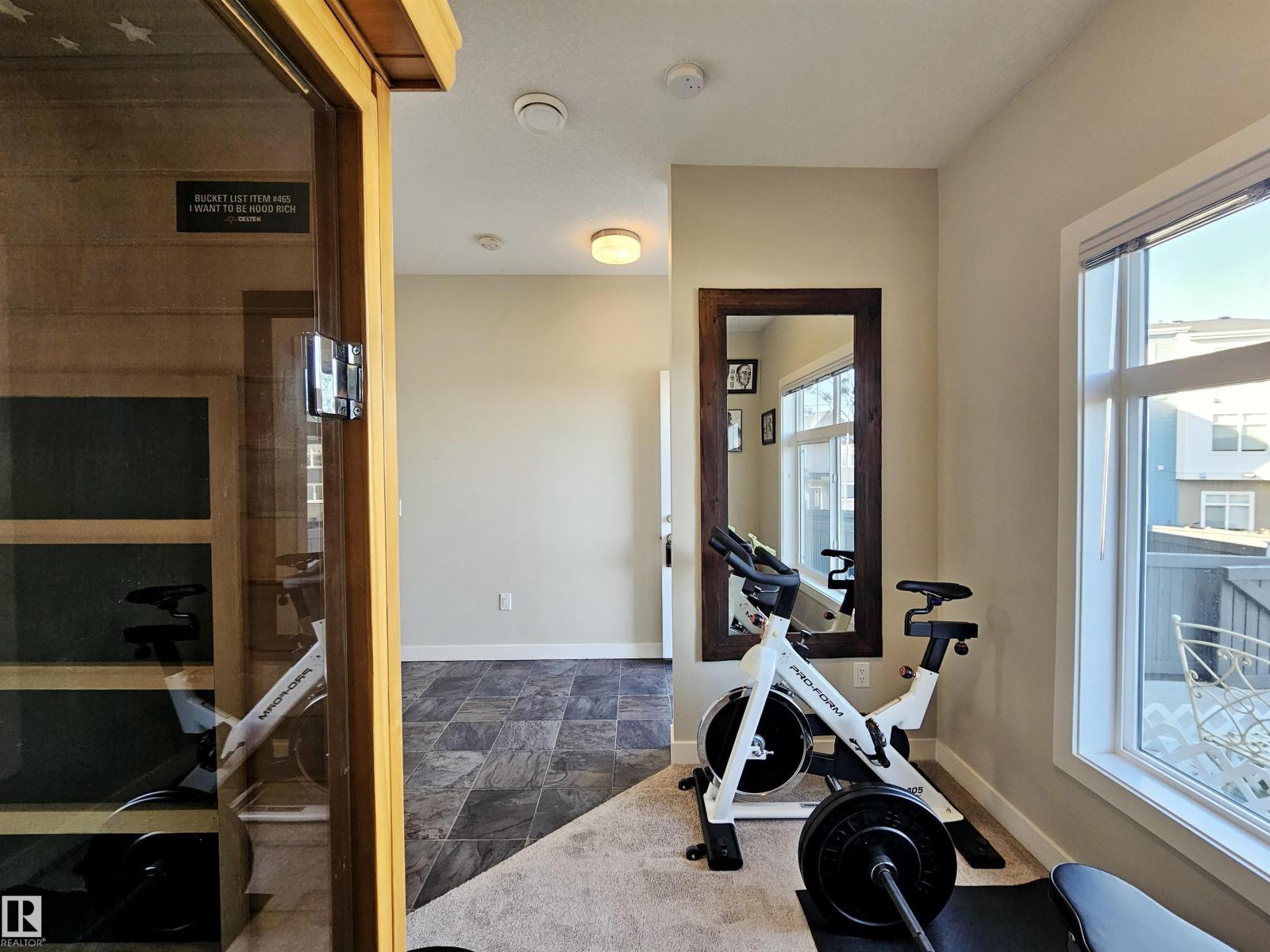 Sophisticated 3-storey executive townhome in desirable Oakmont! This bright, stylish home offers 2 large bedrooms, each with its own full bath. The open-concept main living area is perfect for entertaining, featuring a spacious living room, dining area & modern kitchen with quartz countertops, stainless steel appliances & access to a private south-facing patio. The main level den makes an ideal home office, gym or playroom. Upstairs boasts an extra-large primary suite with 4-pc ensuite & walk-in closet, plus a 2nd bedroom & 4-pc bath. Enjoy an oversized attached garage (10.5’x21’) with water tap, large driveway for extra parking plus one assigned stall, 9-ft ceilings, central A/C, upper-floor laundry & fenced yard. Steps to Sturgeon River walking trails — this home combines comfort, function & location! (id:42720)