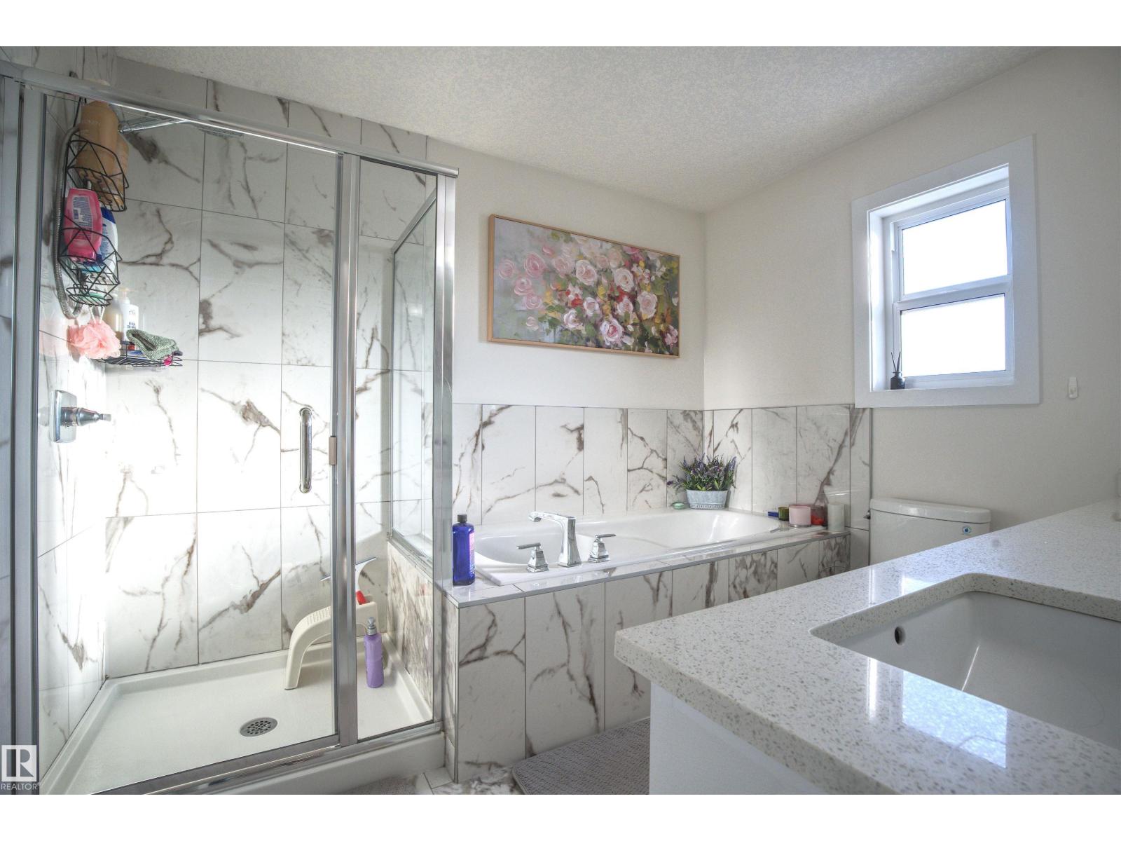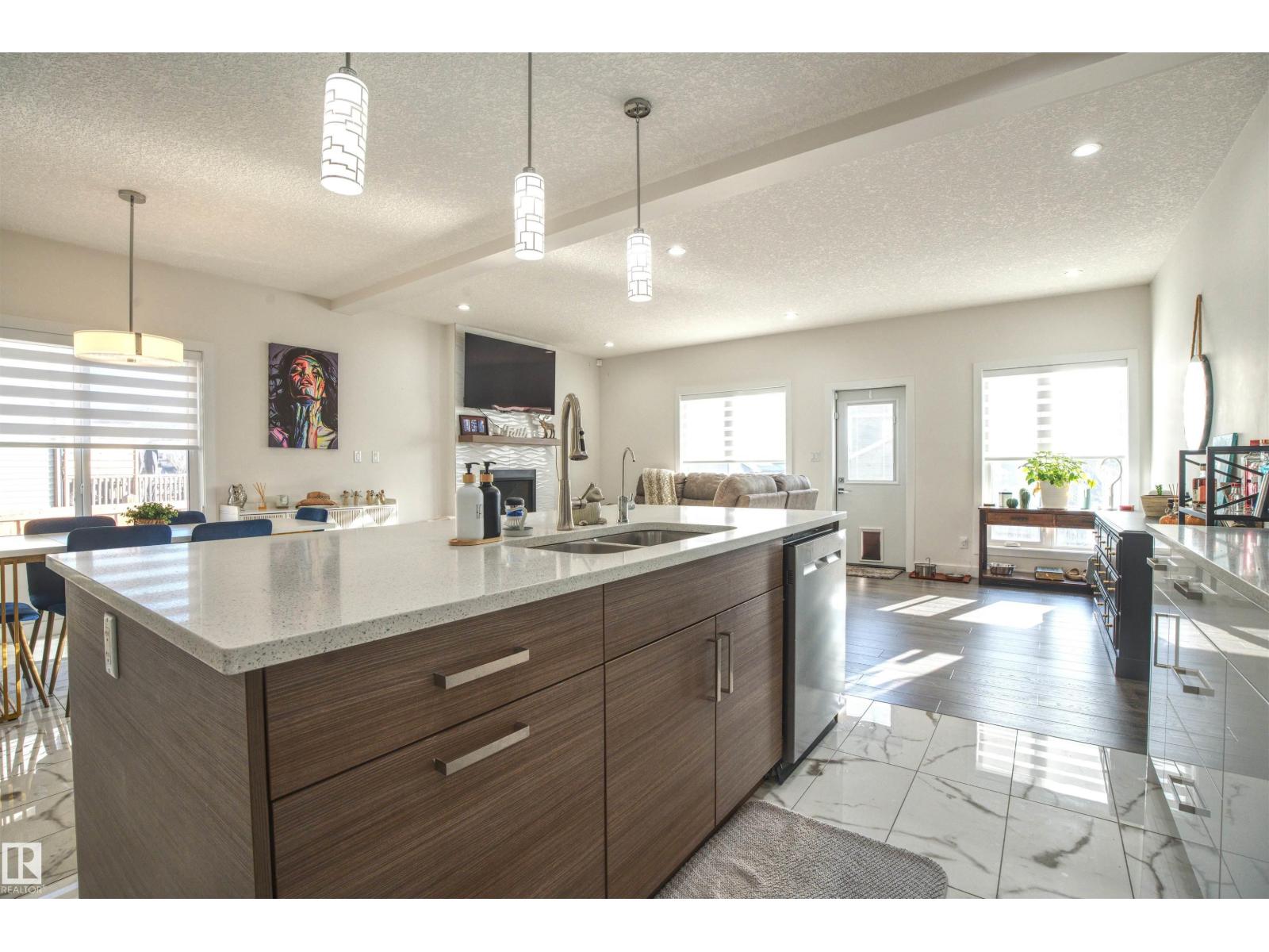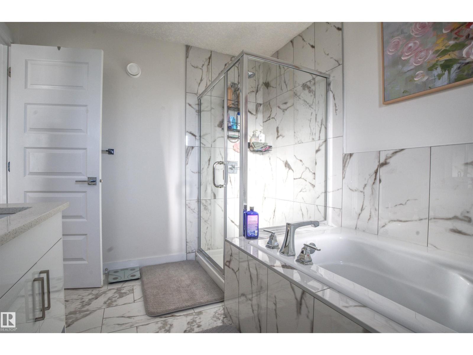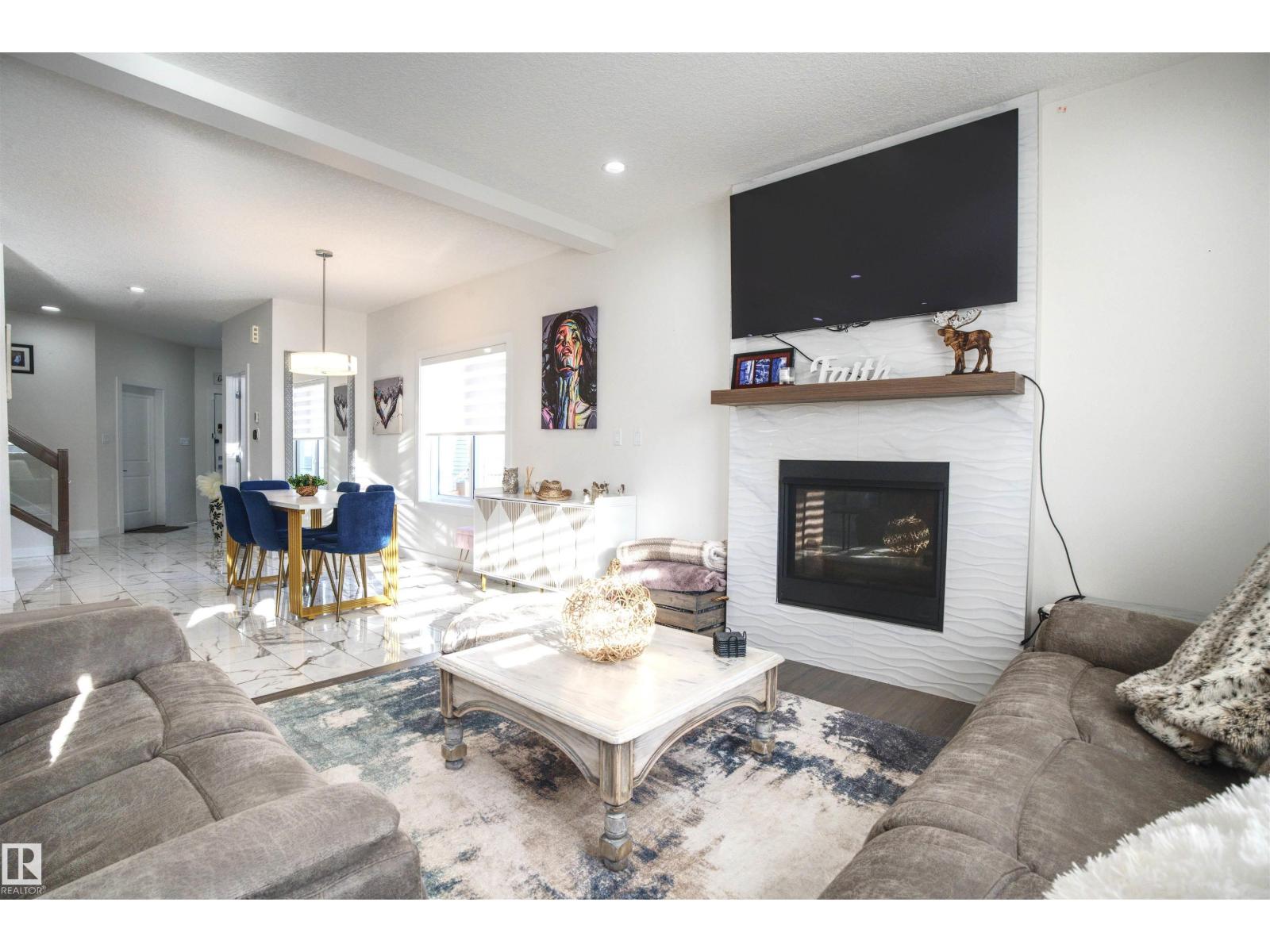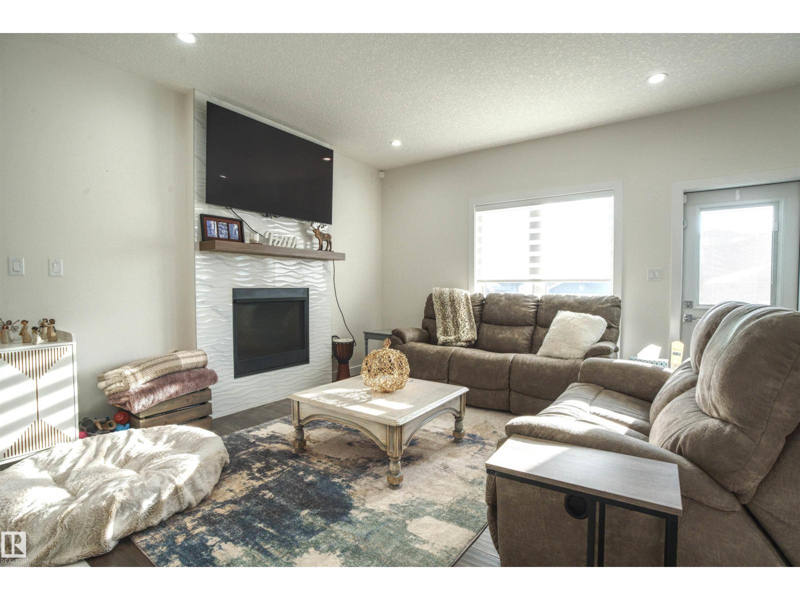 Beautiful & Spacious half-duplex with attached double garage with epoxy floor in Rosenthal. This 2000+ sq ft home features central air conditioning, water softener, vinyl plank flooring and 11’ ceilings. On the main: gas fireplace in the living room, bright dining area and gourmet kitchen with eat-up island, quartz countertops and corner pantry. The owner’s suite offers a 5-pce ensuite with soaker tub. Two additional bedrooms, 4-pce bathroom and huge bonus room complete the upstairs. Unfinished basement with separate entrance ready for a 2 bed suite or additional living space. Huge pie shaped backyard, fully fenced with deck (including gas line) and maintenance free front. Located near walking trails and ponds, 5 minutes to Costco, 10 to WEM, and with easy access to Whitemud Drive & Anthony Henday. A fantastic opportunity! (id:42720)