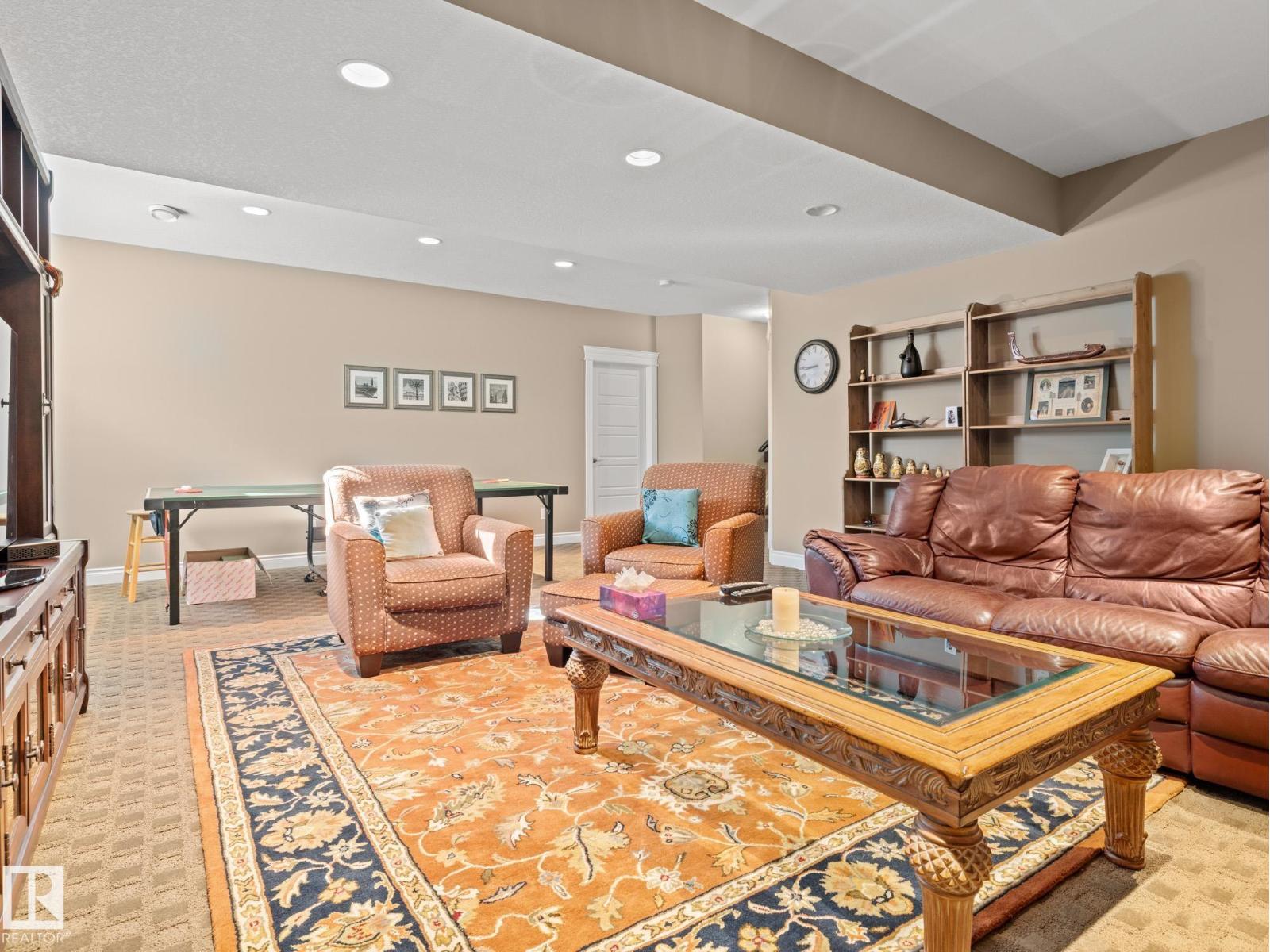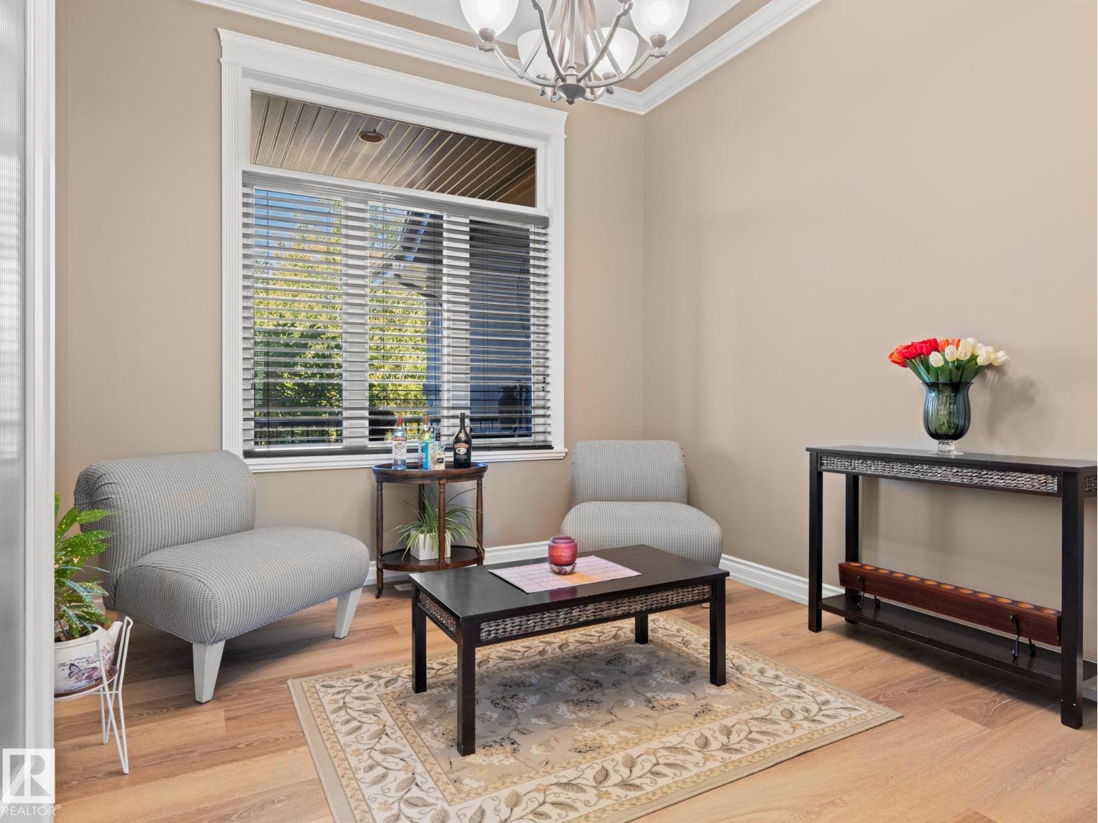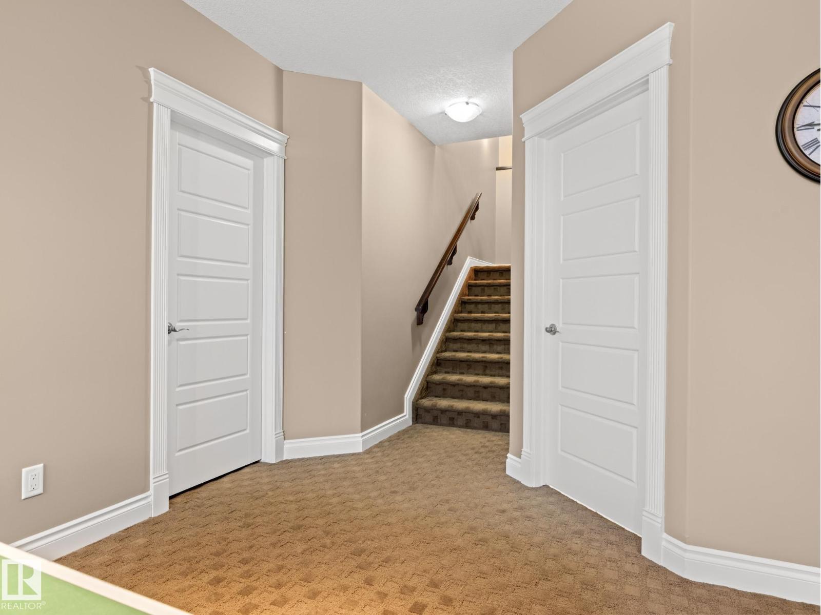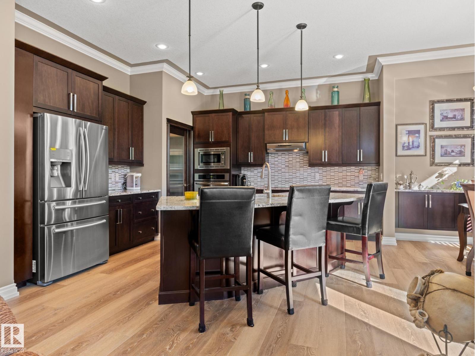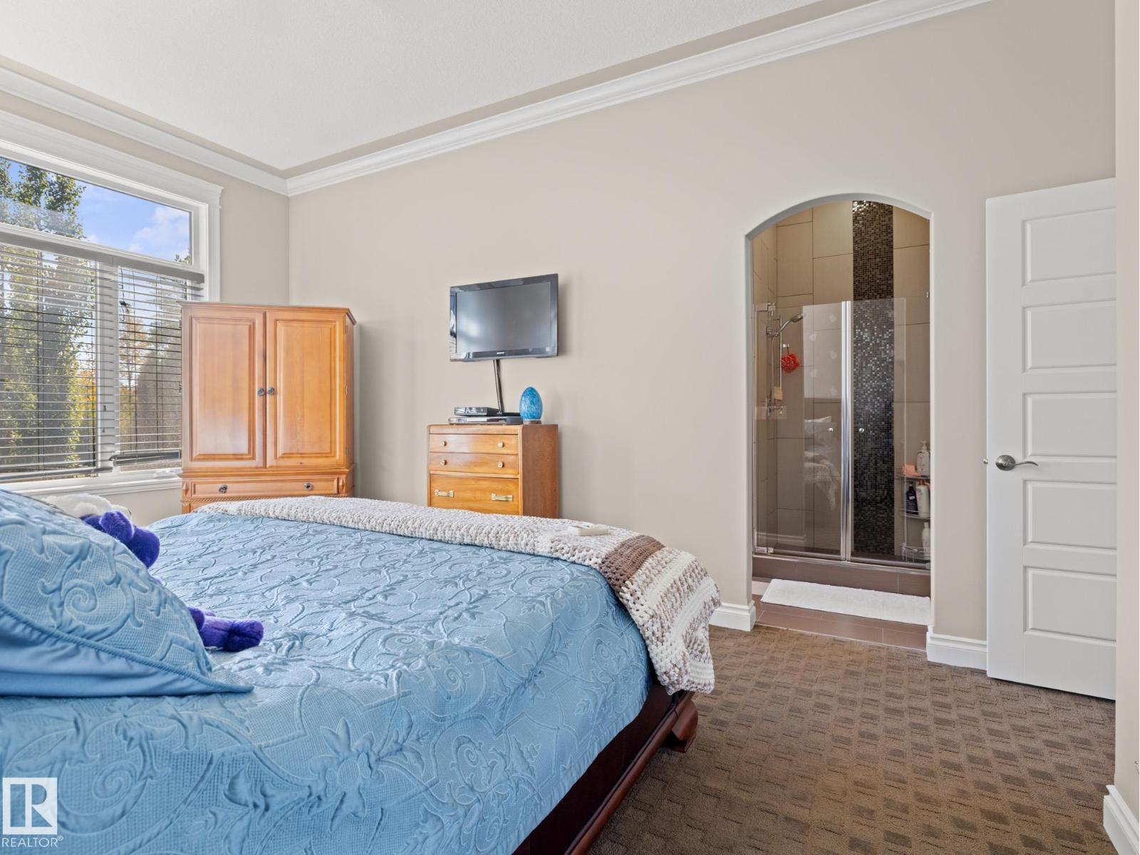 Stunning Luxury Half-Duplex Bungalow in Gated Community! This unit offers the LARGEST floorplan with just under 1900sqft above grade. Just 5 minutes from Spruce Grove, this executive home offers the perfect blend of privacy, convenience, and upscale living. Backing onto a serene pond with pathways exclusive to the community, you’ll enjoy peaceful views right from your backyard. The main floor boasts 10 ft ceilings, BRAND NEW VINYL PLANK FLOORING, a bright living room with fireplace, and a gourmet kitchen featuring a large island and separate dining area—ideal for entertaining. Two massive bedrooms, two full bathrooms and a large den that can be used for office space, complete the main floor. The fully finished basement offers even more living space with two additional bedrooms, a full bathroom, a recreation area, and another cozy fireplace. Step outside to a beautifully landscaped yard with a deck that overlooks a tranquil treed backdrop. NEW FURNACE, A/C, SHED IN THE BACK, and so much more!! (id:42720)