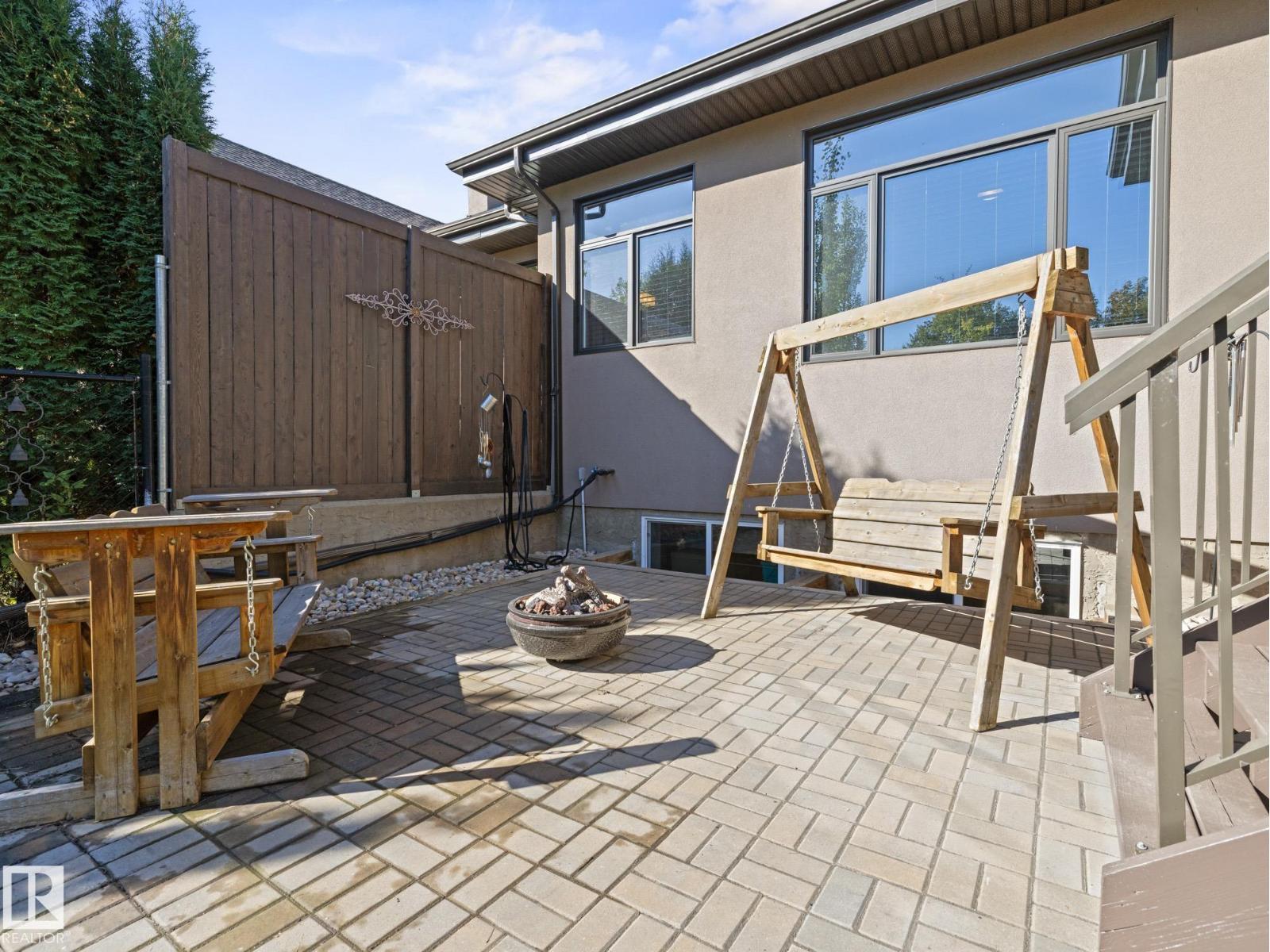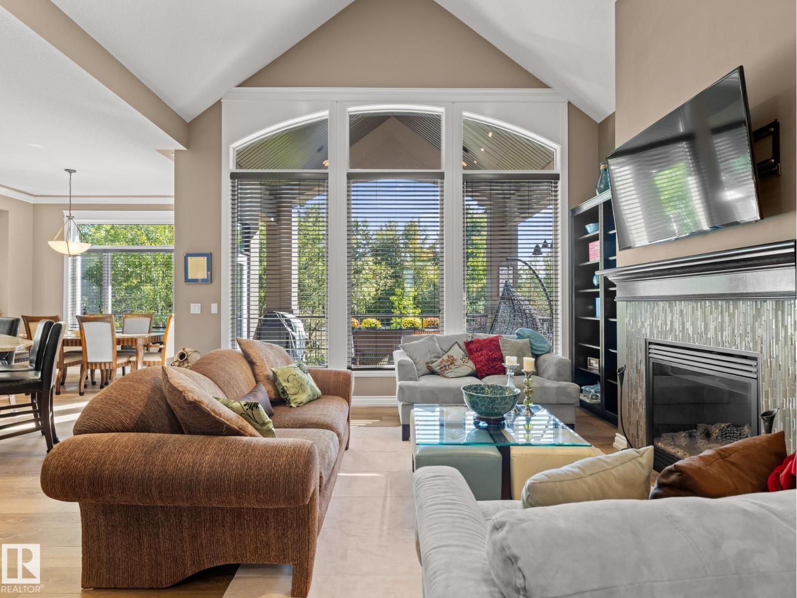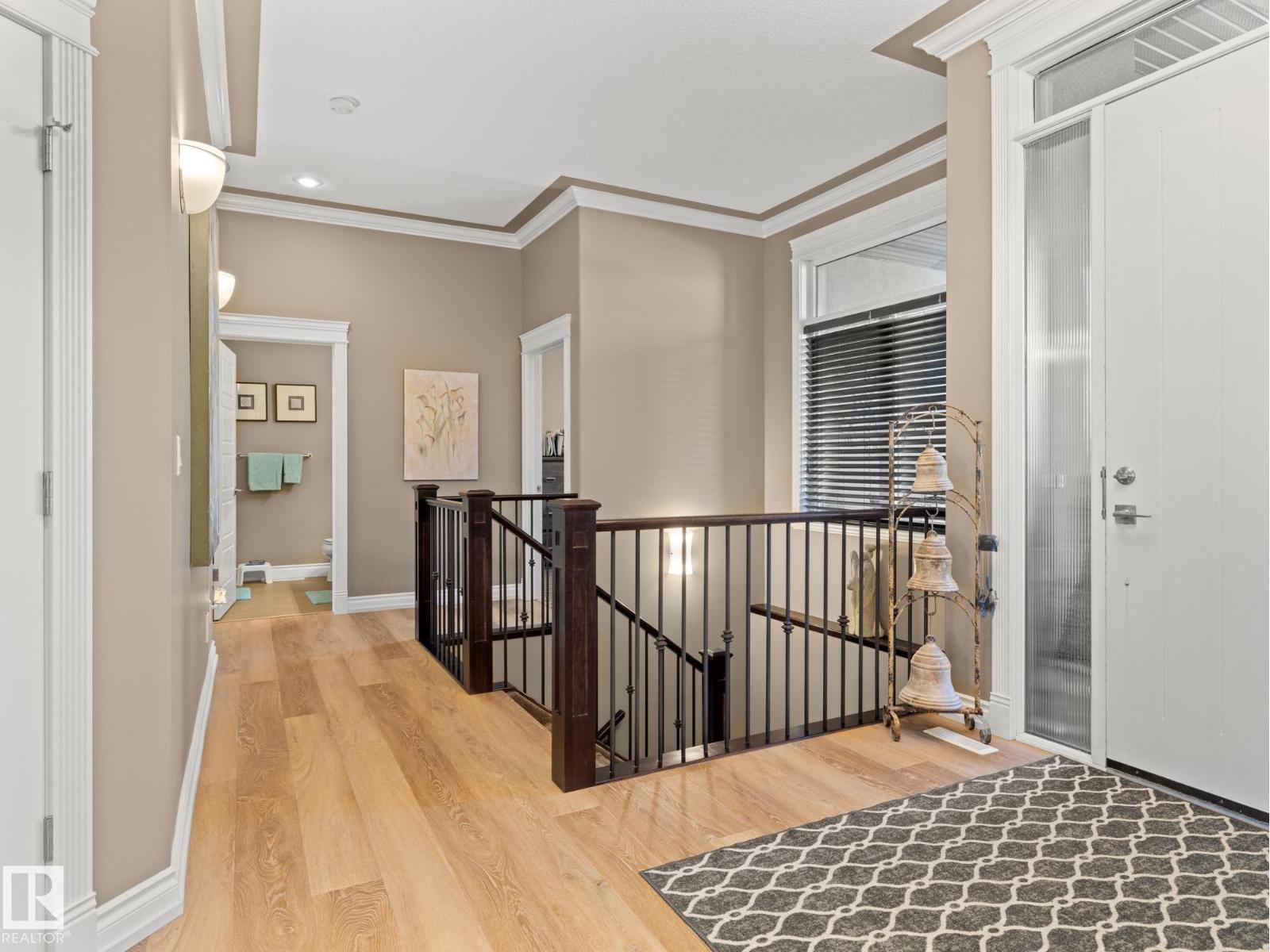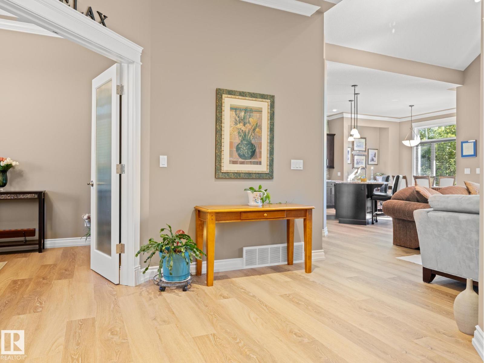 Stunning Luxury Half-Duplex Bungalow in Gated Community! This unit offers the LARGEST floorplan with just under 1900sqft above grade. Just 5 minutes from Spruce Grove, this executive home offers the perfect blend of privacy, convenience, and upscale living. Backing onto a serene pond with pathways exclusive to the community, you’ll enjoy peaceful views right from your backyard. The main floor boasts 10 ft ceilings, BRAND NEW VINYL PLANK FLOORING, a bright living room with fireplace, and a gourmet kitchen featuring a large island and separate dining area—ideal for entertaining. Two massive bedrooms, two full bathrooms and a large den that can be used for office space, complete the main floor. The fully finished basement offers even more living space with two additional bedrooms, a full bathroom, a recreation area, and another cozy fireplace. Step outside to a beautifully landscaped yard with a deck that overlooks a tranquil treed backdrop. NEW FURNACE, A/C, SHED IN THE BACK, and so much more!! (id:42720)