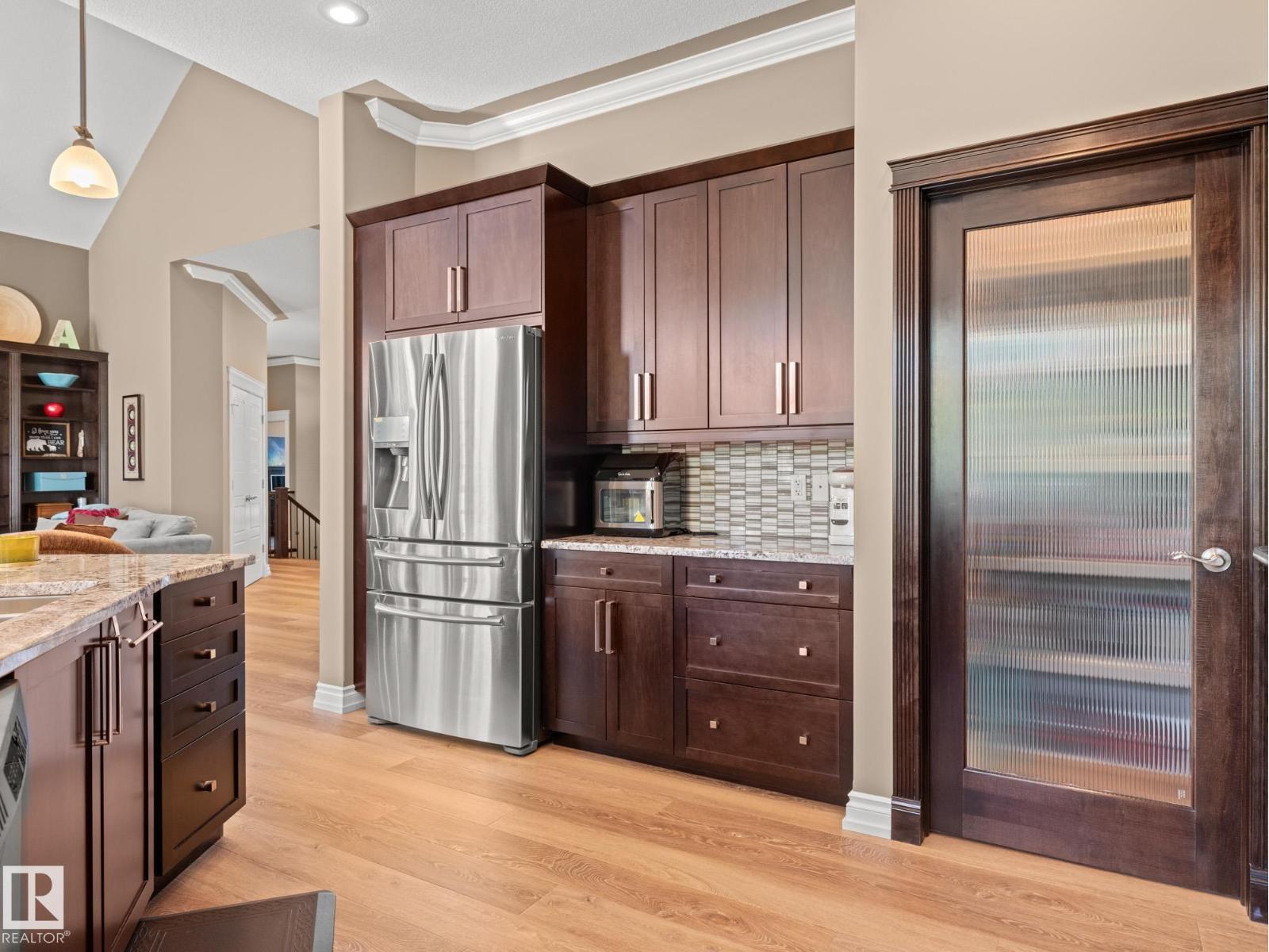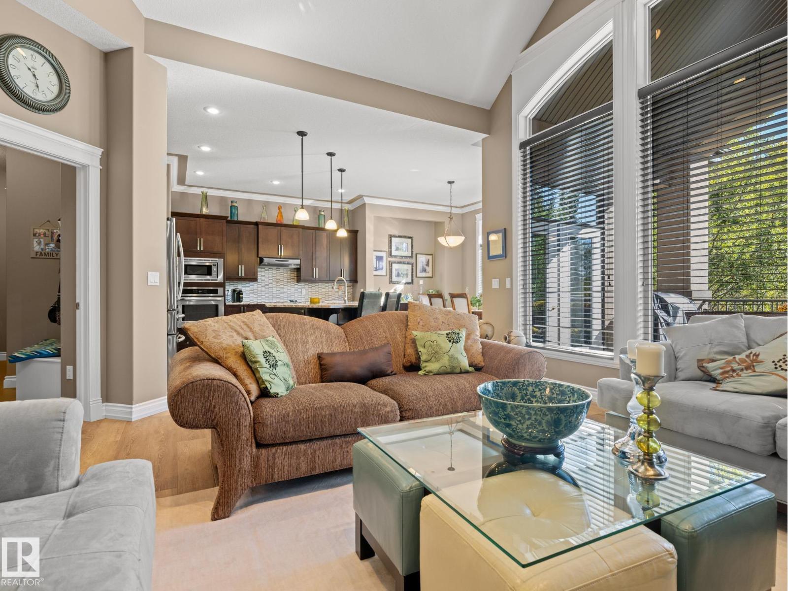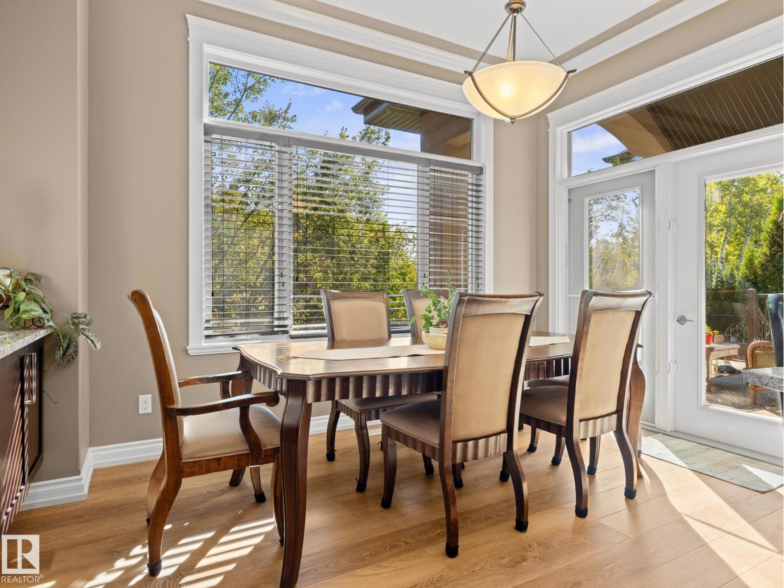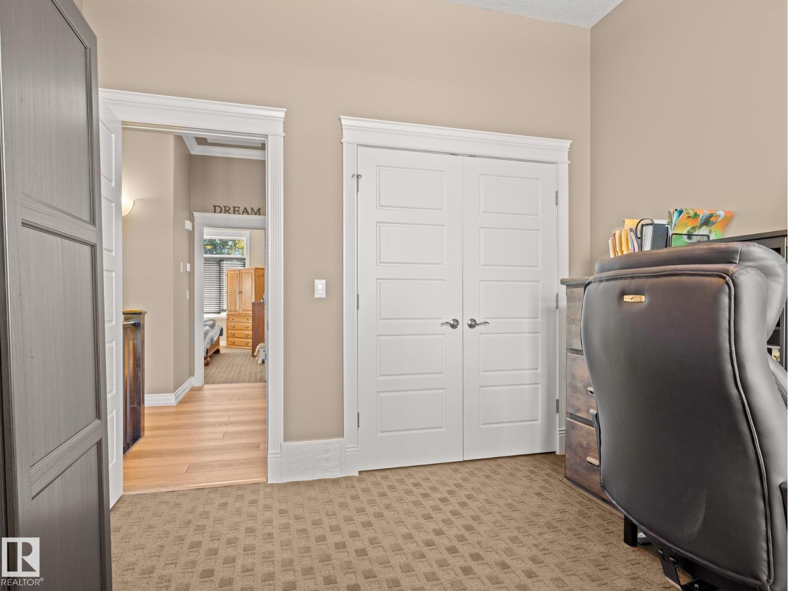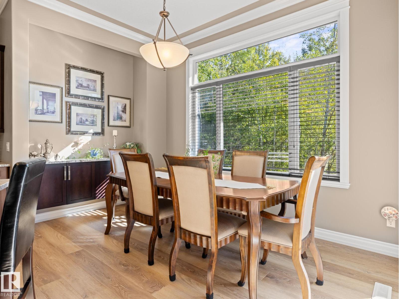 Stunning Luxury Half-Duplex Bungalow in Gated Community! This unit offers the LARGEST floorplan with just under 1900sqft above grade. Just 5 minutes from Spruce Grove, this executive home offers the perfect blend of privacy, convenience, and upscale living. Backing onto a serene pond with pathways exclusive to the community, you’ll enjoy peaceful views right from your backyard. The main floor boasts 10 ft ceilings, BRAND NEW VINYL PLANK FLOORING, a bright living room with fireplace, and a gourmet kitchen featuring a large island and separate dining area—ideal for entertaining. Two massive bedrooms, two full bathrooms and a large den that can be used for office space, complete the main floor. The fully finished basement offers even more living space with two additional bedrooms, a full bathroom, a recreation area, and another cozy fireplace. Step outside to a beautifully landscaped yard with a deck that overlooks a tranquil treed backdrop. NEW FURNACE, A/C, SHED IN THE BACK, and so much more!! (id:42720)