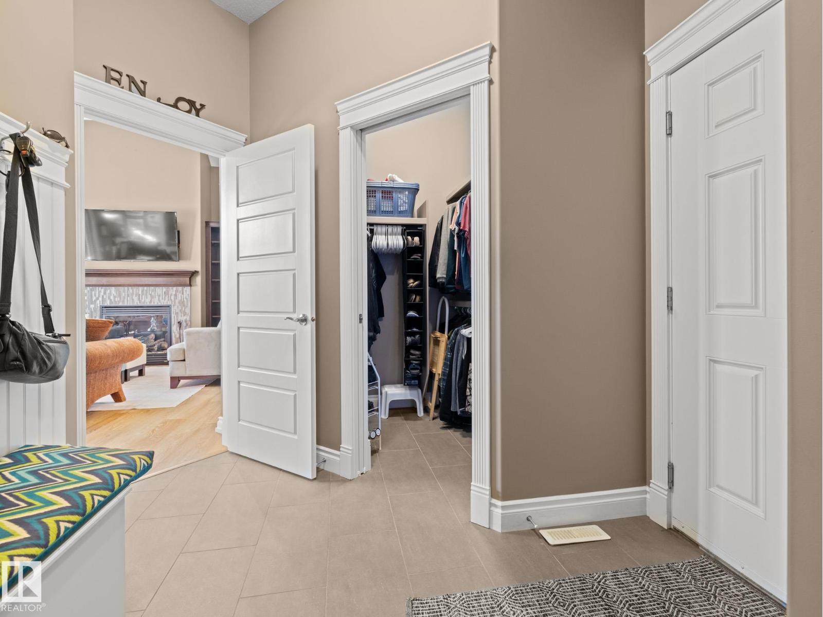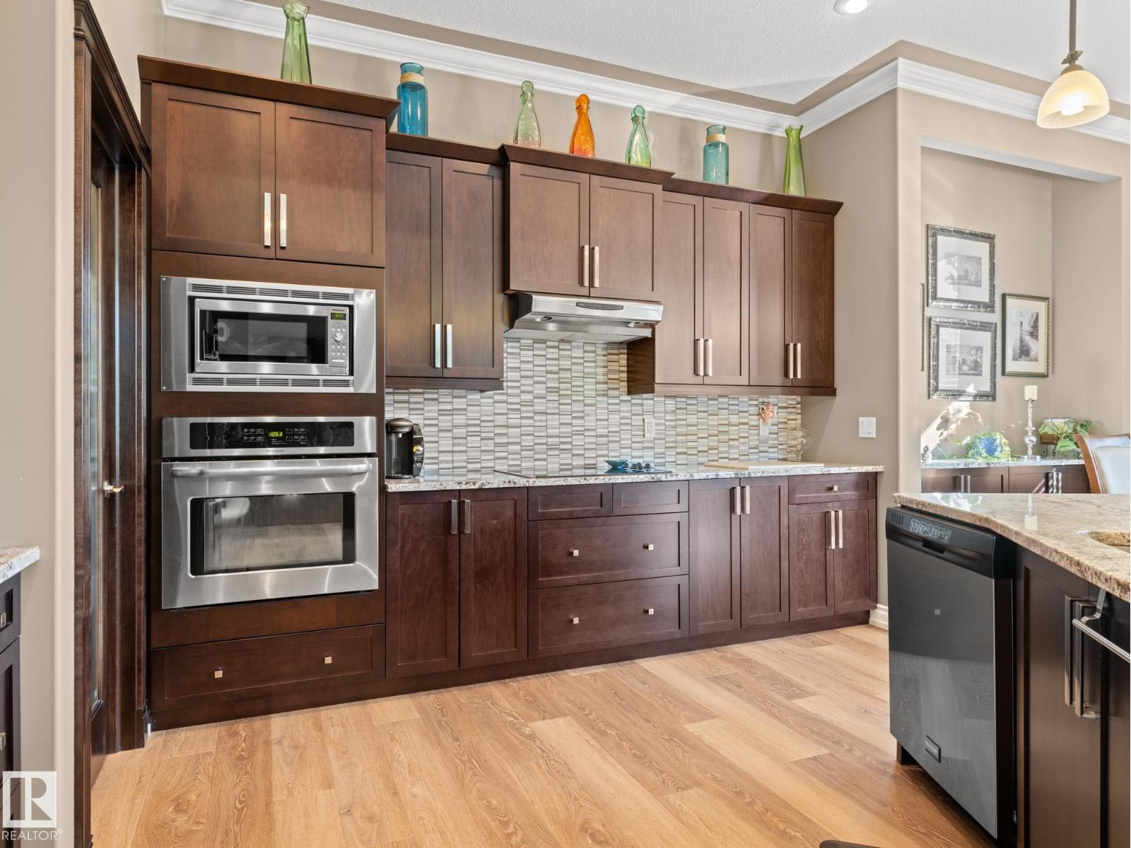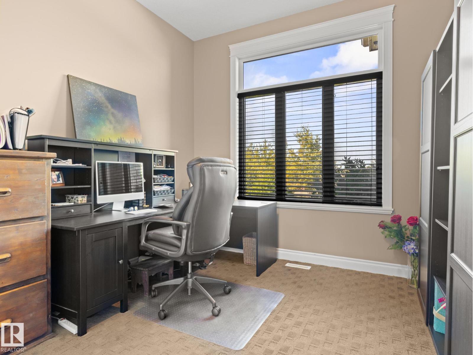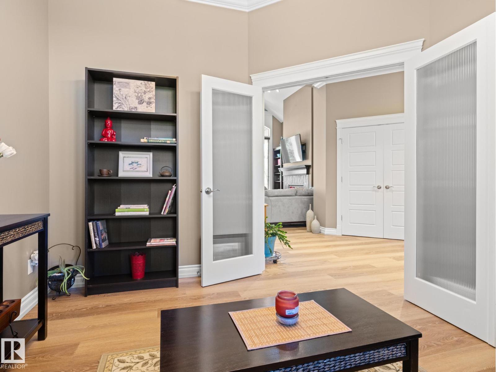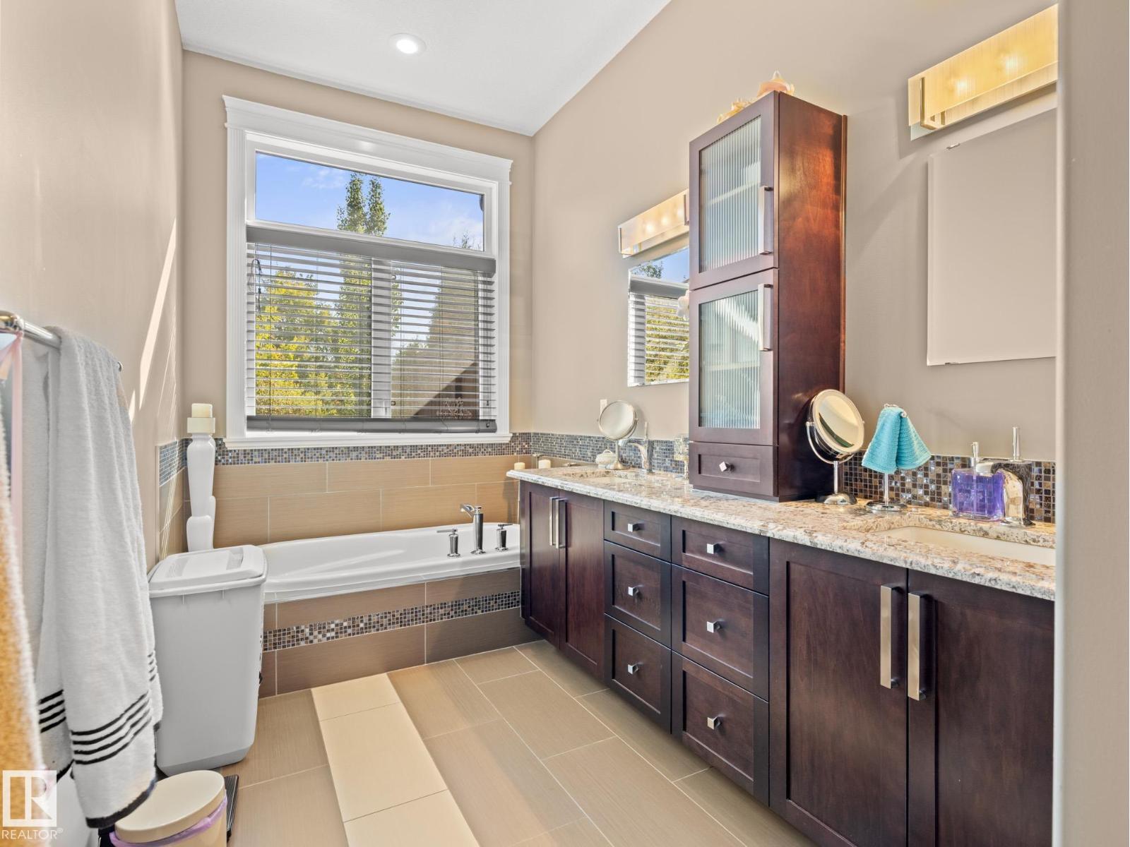 Stunning Luxury Half-Duplex Bungalow in Gated Community! This unit offers the LARGEST floorplan with just under 1900sqft above grade. Just 5 minutes from Spruce Grove, this executive home offers the perfect blend of privacy, convenience, and upscale living. Backing onto a serene pond with pathways exclusive to the community, you’ll enjoy peaceful views right from your backyard. The main floor boasts 10 ft ceilings, BRAND NEW VINYL PLANK FLOORING, a bright living room with fireplace, and a gourmet kitchen featuring a large island and separate dining area—ideal for entertaining. Two massive bedrooms, two full bathrooms and a large den that can be used for office space, complete the main floor. The fully finished basement offers even more living space with two additional bedrooms, a full bathroom, a recreation area, and another cozy fireplace. Step outside to a beautifully landscaped yard with a deck that overlooks a tranquil treed backdrop. NEW FURNACE, A/C, SHED IN THE BACK, and so much more!! (id:42720)